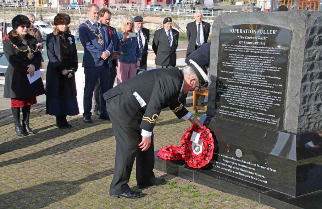 The Lord-Lieutenant was honoured to attend the annual Ramsgate Royal Navy Association Channel Dash Memorial Service, held to remember the brave personnel who took part in Operation Fuller in 1942. This important commemoration reflects Kent’s significant role during the Second World War, and the Lord-Lieutenant was pleased to join the Mayor of Ramsgate, families of those involved, representatives of the Royal Naval Association and members of the local community in paying tribute.